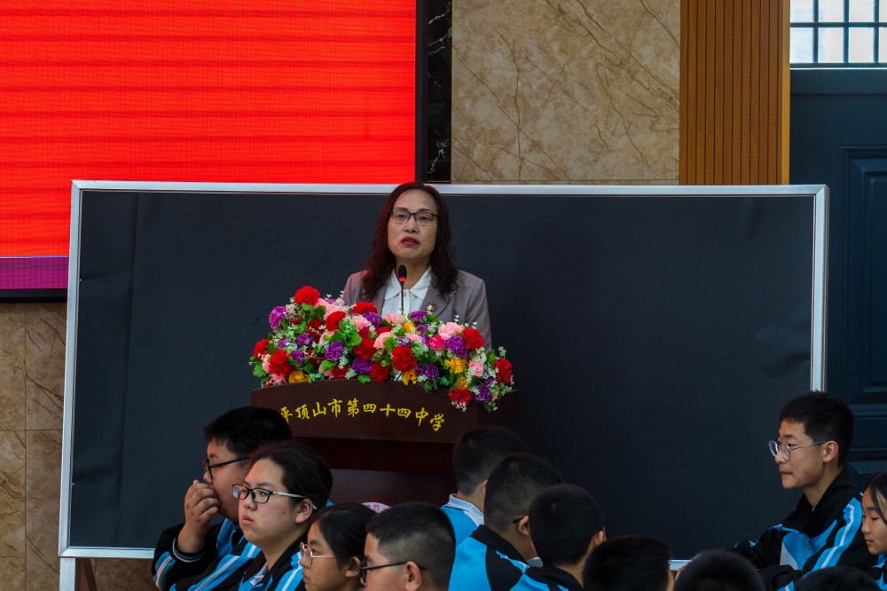 景艳伟致欢迎辞。她简单介绍了四十四中的办学历史、发展概况,着重介绍七年级三班和教师鲁璠璠,并安排鲁璠璠老师讲授示范课——《中学语文作文教学》。