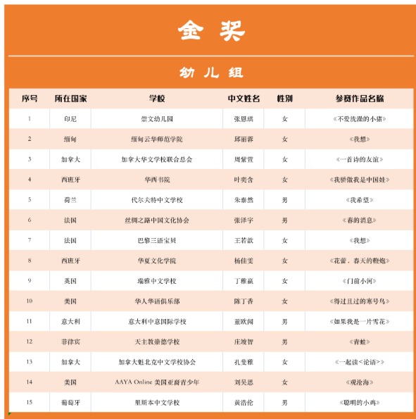 近日,由中国华文教育基金会主办的2022年第五届全球华语朗诵大赛获奖名单揭晓。来自美国亚裔青少年协会的多位参赛选手获得优异成绩,刘吴思同学《观沧海》获幼儿组金奖;谢宛庭同学《哭比笑好》获少儿组银奖,程一诺同学《跳蚤》获少年组银奖,谢宛茹同学《我该怎么办》获少年组铜奖,苏诗钰同学《我骄傲,我是中国人》获幼儿组铜奖,李诺然同学担任美国形象大使并获最佳声音奖。